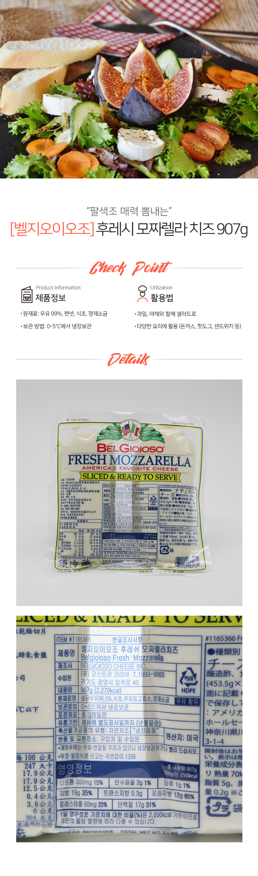 벨지오 냉장 후레쉬 모짜렐라치즈 슬라이스 907g