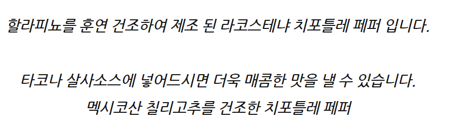 ![[6개] 라코스테냐 치포틀레 페퍼 캔 2.8kg 훈연할라피뇨 타코 부리또 멕시칸요리활용 이미지](https://content.foodspring.co.kr/vendor/314/images/61_1295108608_r.jpg?f=webp&s=876x876&t=inside)