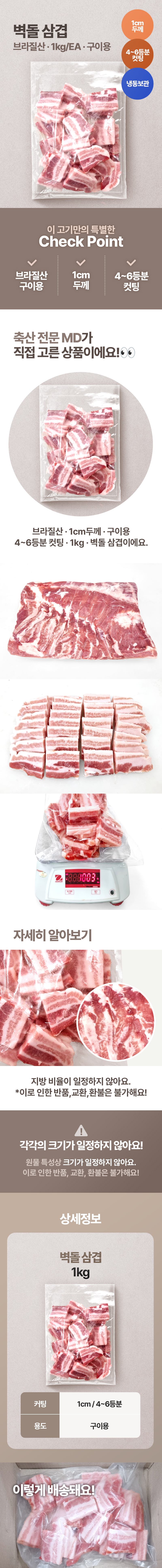 ♥정육특가♥ AURORA 벽돌 삼겹(1cm + 4~6등분 1kg/EA) 구이용