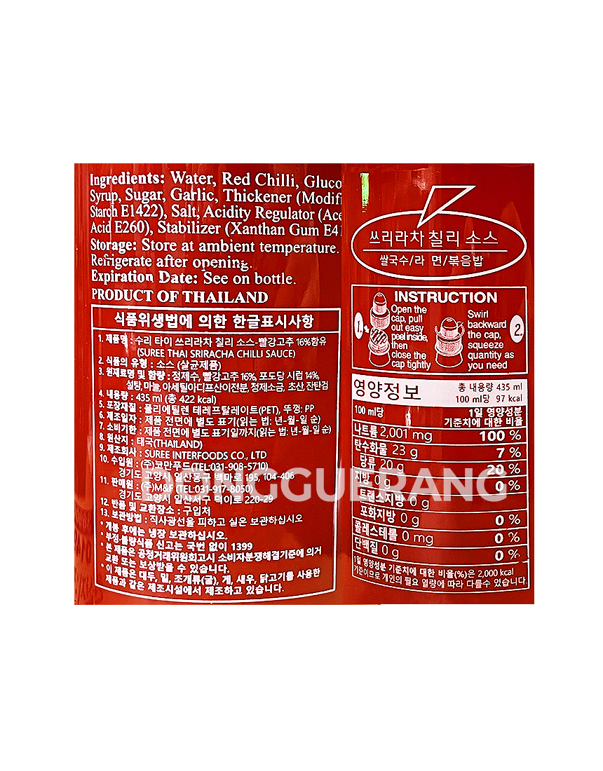 수리 타이 쓰리라차 칠리소스(스리라차/코만/캡) 435ml