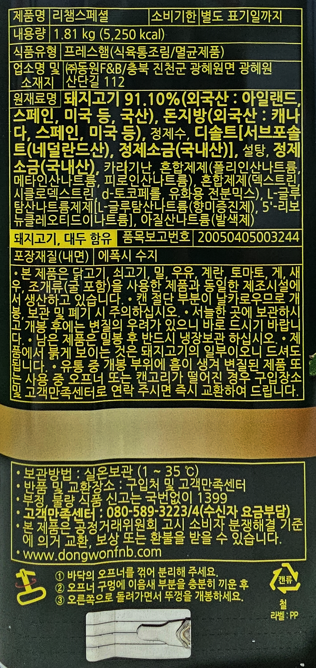 ★한정수량 초특가★동원 리챔 1.81kg 햄, 부대찌개 햄, 스팸(제한) 이미지