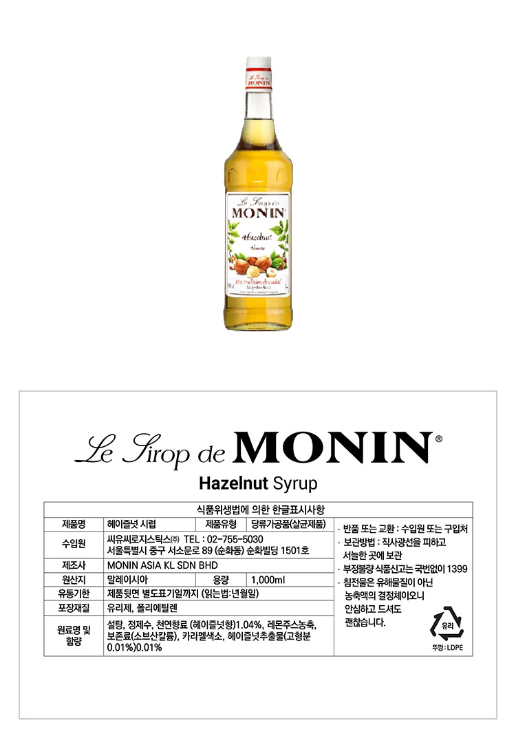모닌_헤이즐럿시럽 1L/EA 이미지
