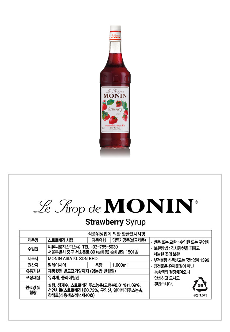 모닌_스트로베리시럽/딸기시럽 1L/EA