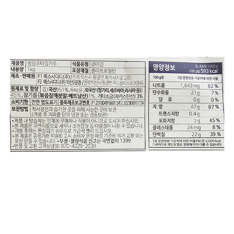 ♥수산특가♥ 정담김 조미김가루(국내산 1Kg/EA) 김가루 업소용
