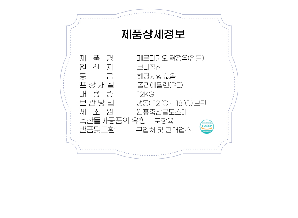 ![[원흥축산 배송] 브라질산 페르디가오 닭정육12KG(박스, 2KG X 6) 닭다리살 이미지](https://content.foodspring.co.kr/vendor/3116/images/108_7068022951_r.jpg?f=webp&s=876x876&t=inside)