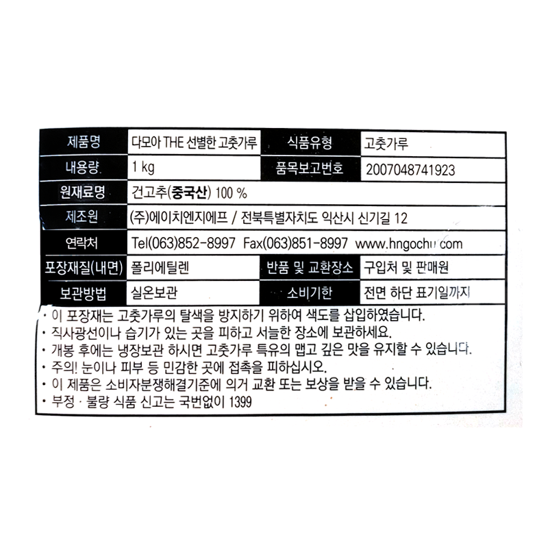 ★초특가★ 다모아 고춧가루 1Kg (김치용,거침,굵은굵기) The선별한 고추가루 중국산