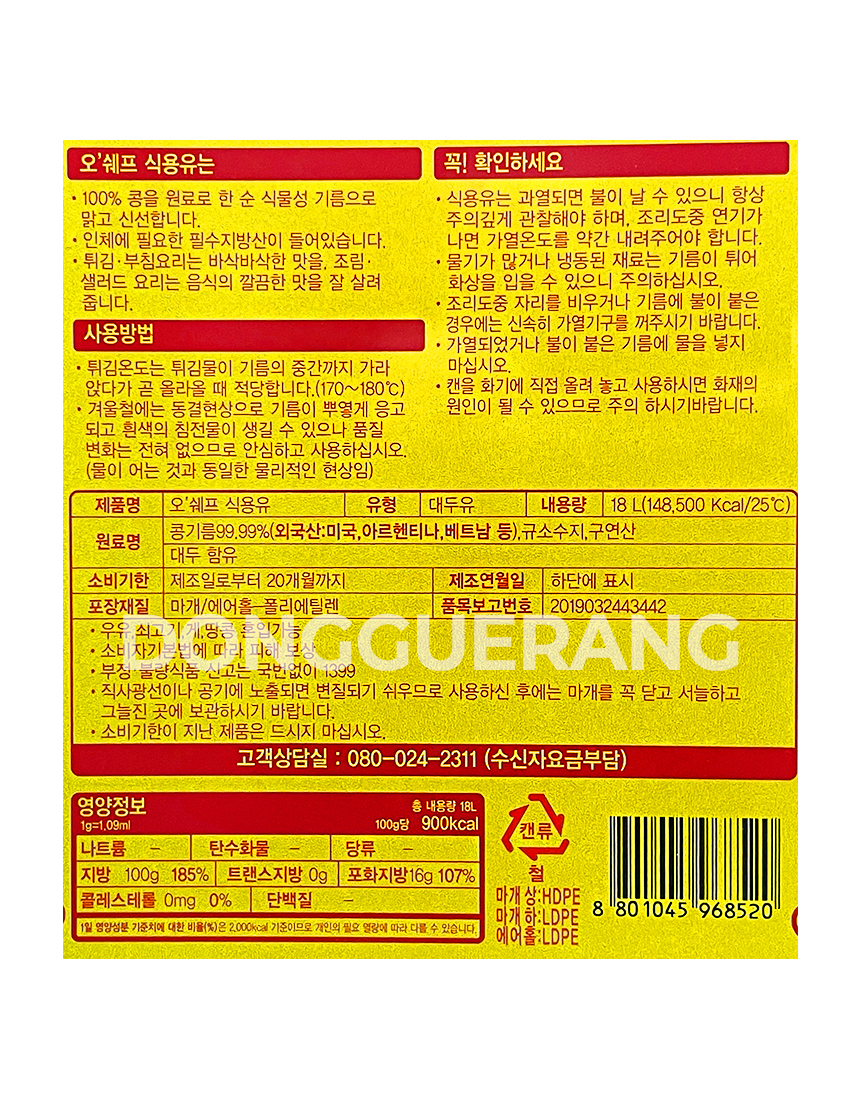 오뚜기 오쉐프 식용유 (말통) 18L 이미지