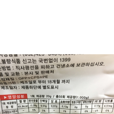 본 제품은 제품입고일별 소비기한 또는 품질유지기한이 상이하므로, 필요시 고객센터로 문의하여 주십시오. 제조일로부터 720일 까지