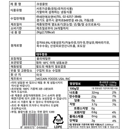 맥케인 냉동감자(크링클컷 2Kg/EA)