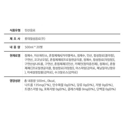 펩시 콜라(500ml*20ea_제로슈거_라임향 500g/EA)
