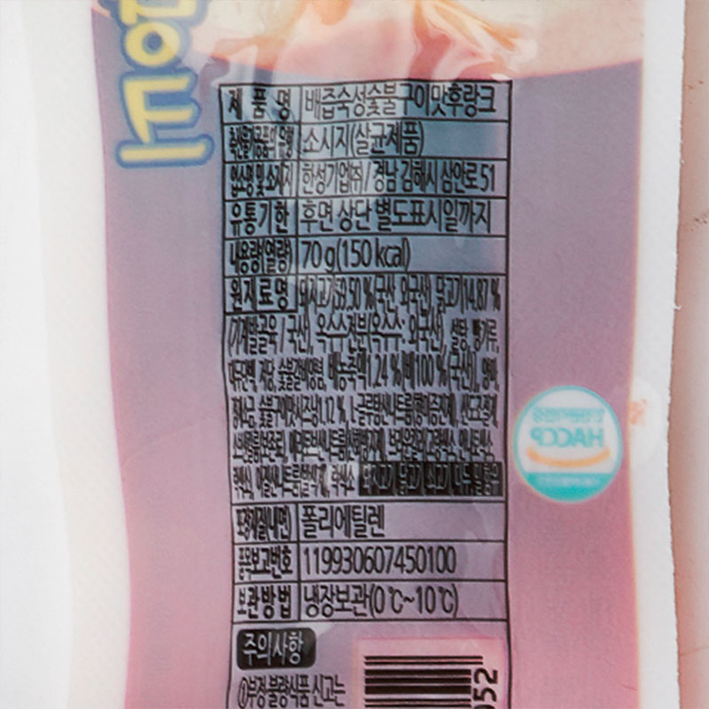 한성 후랑크소시지(배즙숙성숯불구이 70g/EA) 이미지