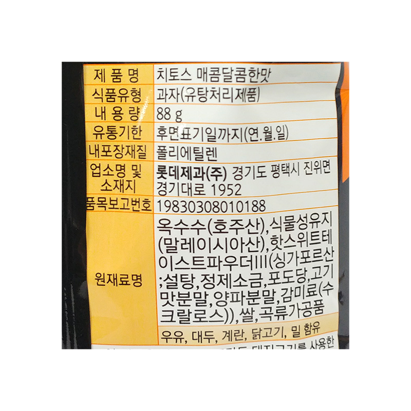 롯데제과 치토스(매콤달콤한맛 88g/EA) 이미지