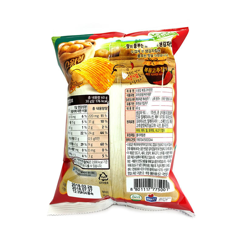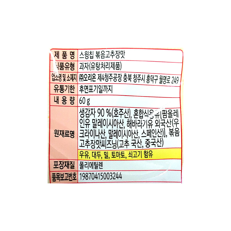 오리온 뉴스윙칩(핫볶음고추장맛 60g/EA)