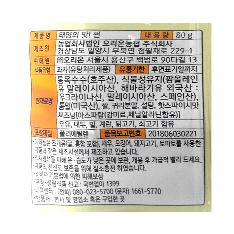 오리온 썬칩(핫스파이시맛 80g/EA)