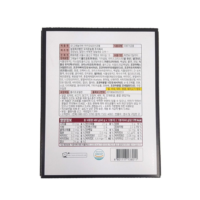 오리온 그래놀라바단백질바(카카오_40g*12개입 480g/EA)