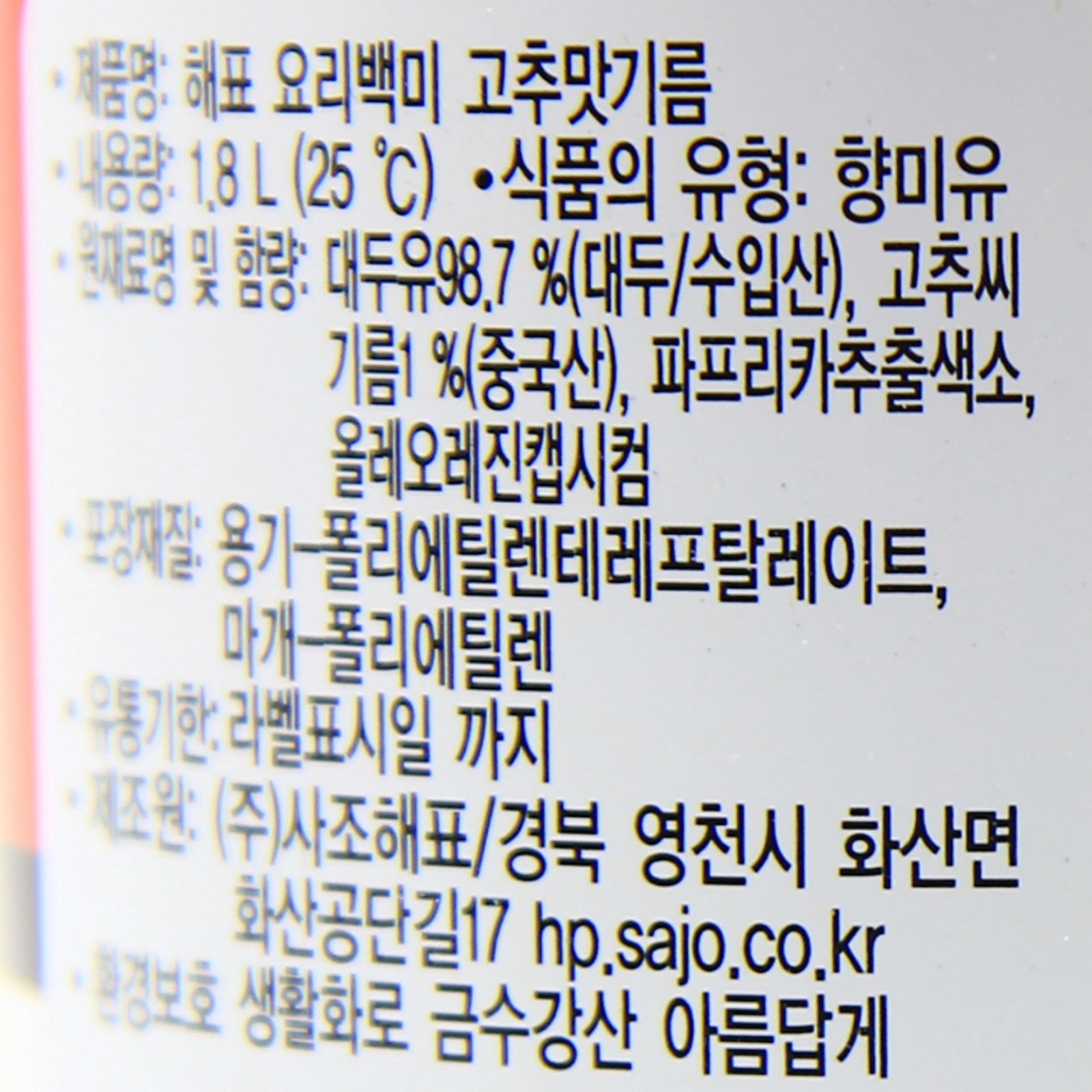 해표 고추맛기름(1.8L 1.8Kg/EA) 이미지