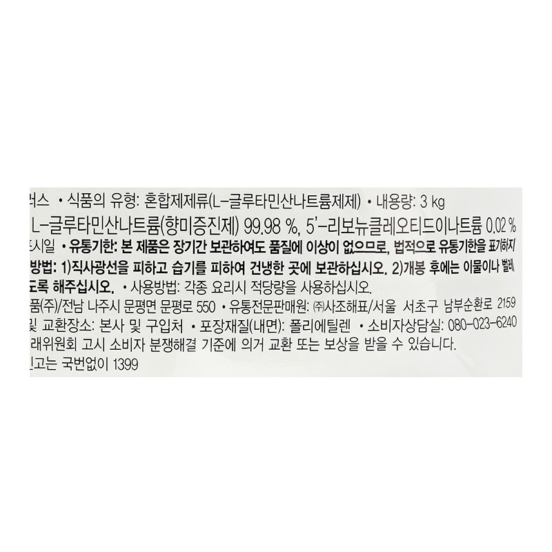 해표 조미료(요리플러스 3Kg/EA) 이미지