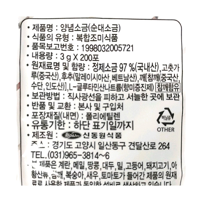 신동원식품 양념소금(3g*200입 순대소금용 600g/EA)