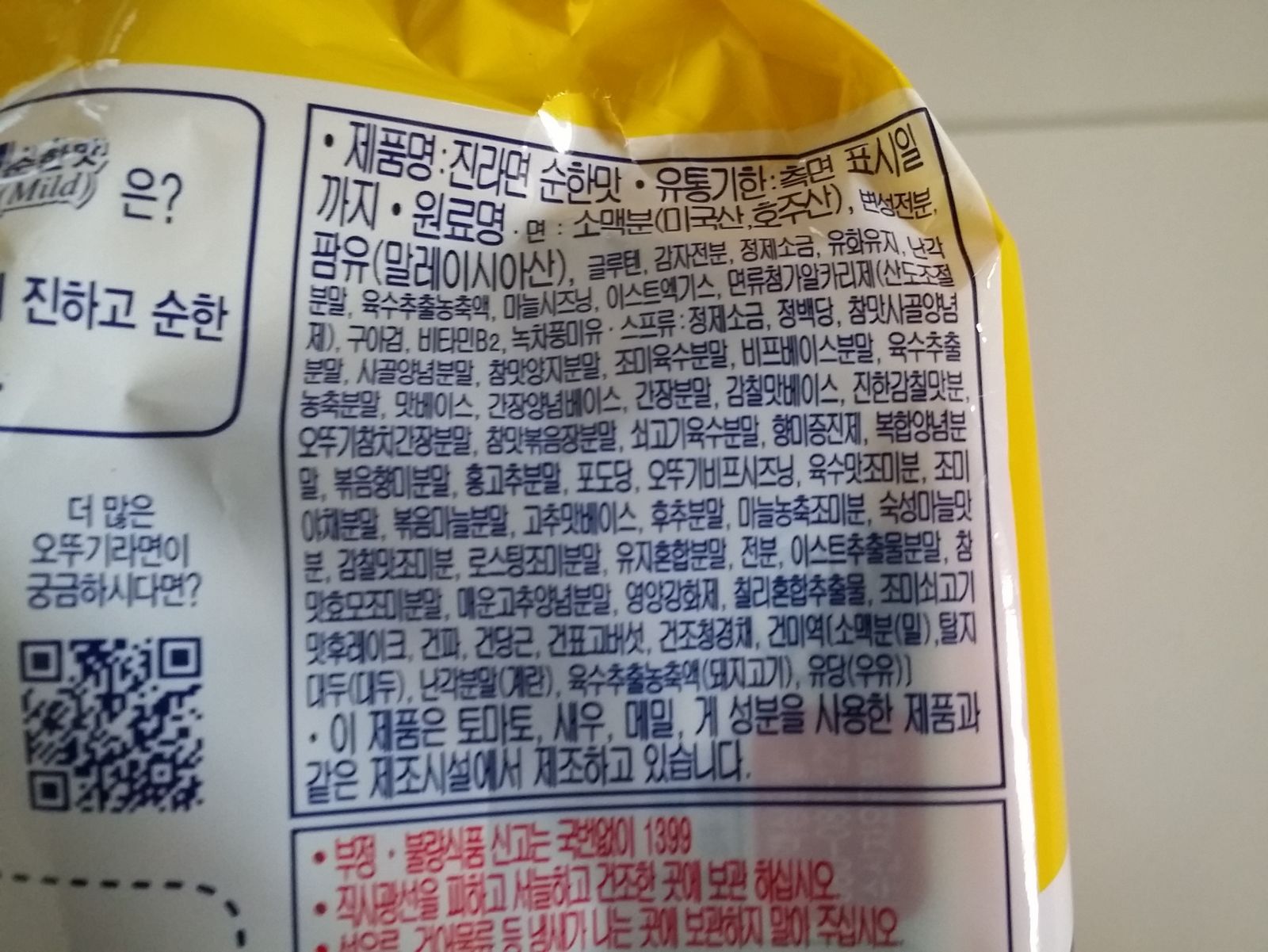 오뚜기 진라면(멀티팩_순한맛_120g*5입 600g/EA)