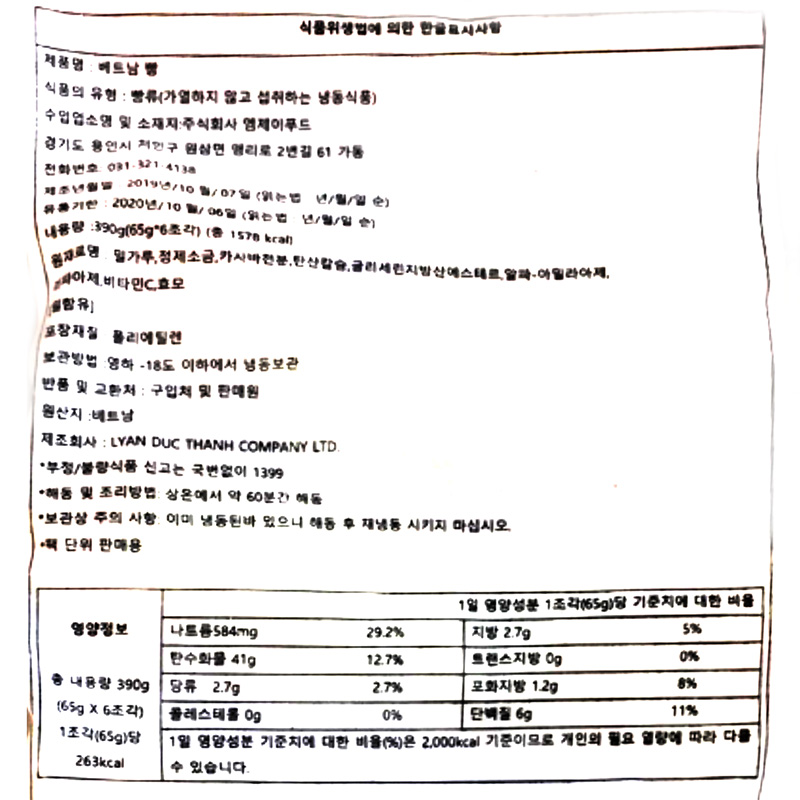 엠제이푸드 반미(바게트_65g*6입 390g/EA) 이미지