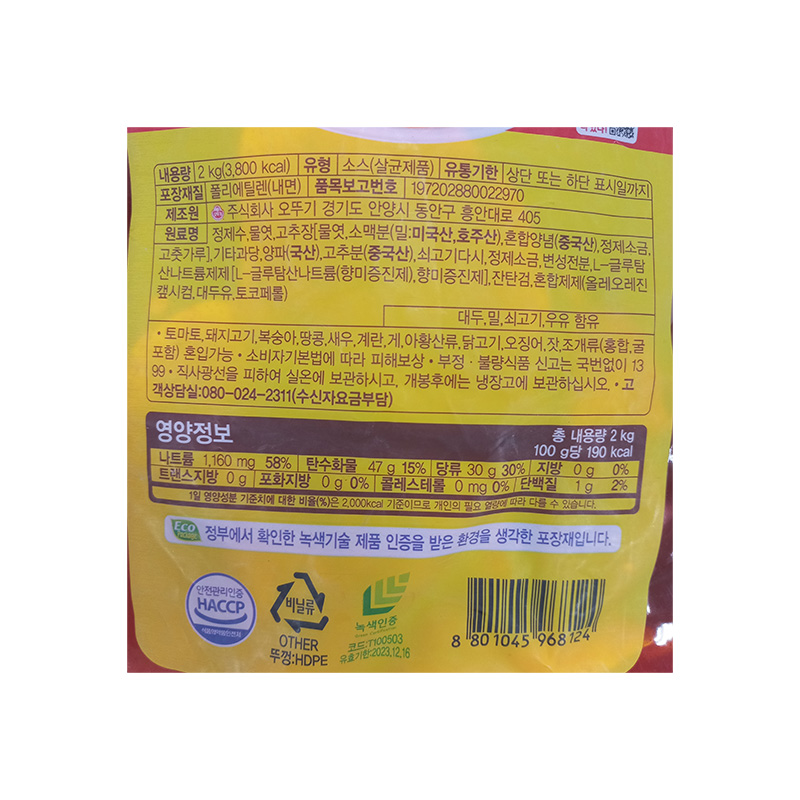 오쉐프 떡볶이소스(스파우트 2Kg/EA)