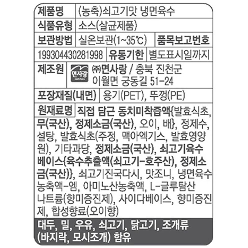 면사랑 냉면육수(쇠고기맛_농축액 2.1Kg/EA) 이미지