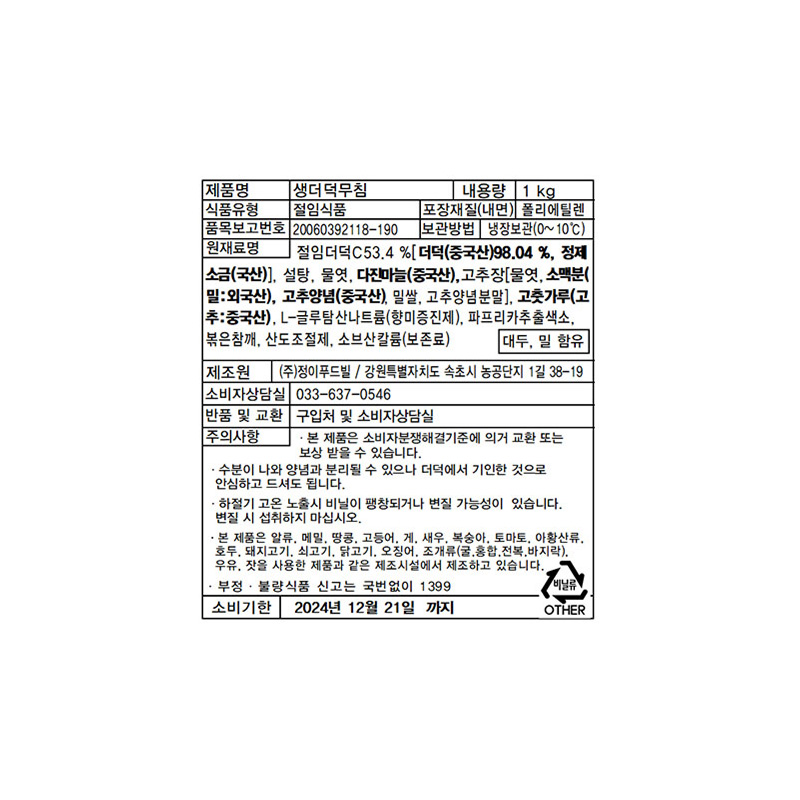 정이푸드빌 생더덕무침(1Kg/EA) 이미지