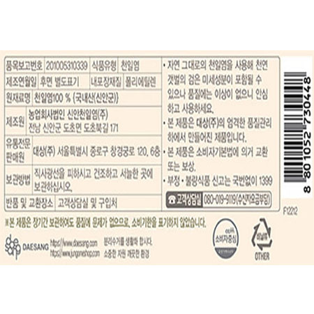 본 제품은 제품입고일별 소비기한 또는 품질유지기한이 상이하므로, 필요시 고객센터로 문의하여 주십시오. 제조일로부터 1825일 까지