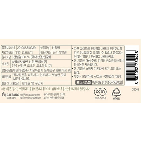 청정원 가는소금천일염(1Kg/EA) 이미지