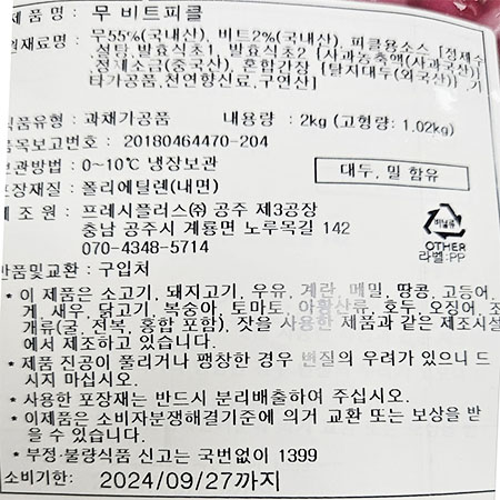 프레시플러스 무비트피클(무55% 2Kg/EA)