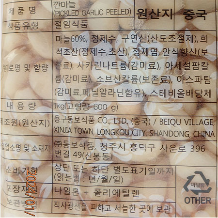 동보식품 마늘지(초절임_깐것60% 1Kg/EA) 이미지