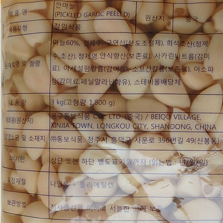 동보식품 마늘지(초절임_깐것60% 3Kg/EA) 이미지