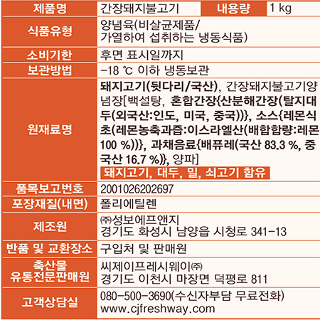 이츠웰 간장돼지불고기(1Kg/EA) 이미지