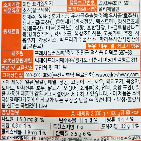 본 제품은 제품입고일별 소비기한 또는 품질유지기한이 상이하므로, 필요시 고객센터로 문의하여 주십시오. 제조일로부터 180일 까지