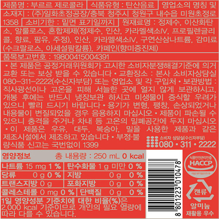 부르르 제로콜라(캔_250ml 250g/EA)