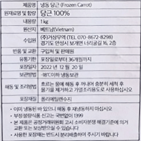 수입식품안전관리특별법에 따른 수입신고를 필함