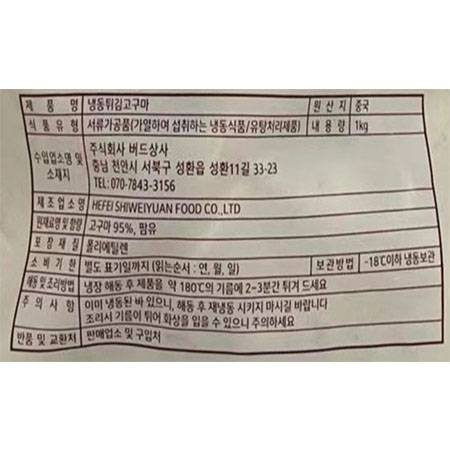 냉동고구마(3~5cm절단_튀김고구마 맛탕용 1Kg/EA)