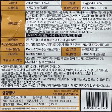 선진 아메리칸치즈소시지(100g*10입 핫도그용 1Kg/EA)