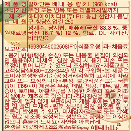 해태 갈아만든배(2L 2Kg/EA) 이미지
