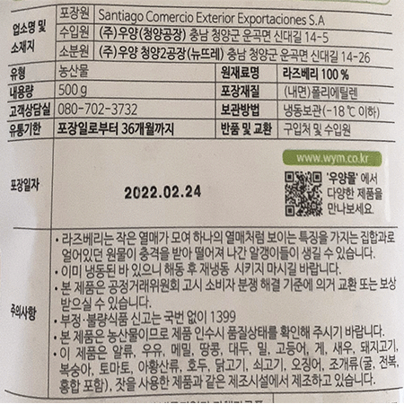 우진식품 냉동라즈베리(500g/EA)