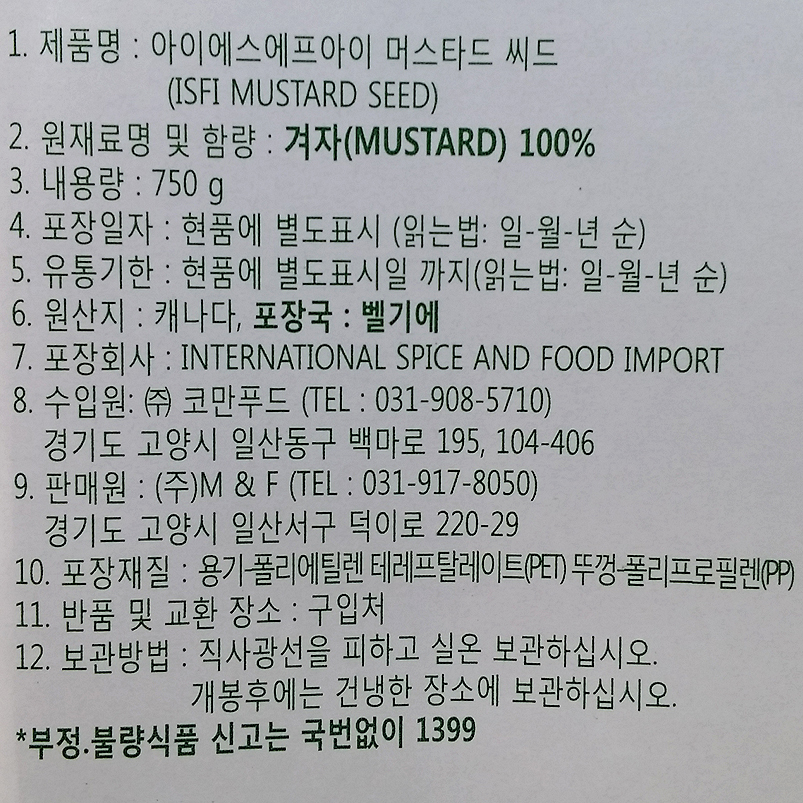 수입식품안전관리특별법에 따른 수입신고를 필함