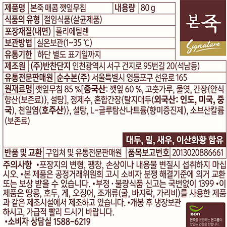 본죽 매콤깻잎무침(80g/EA)