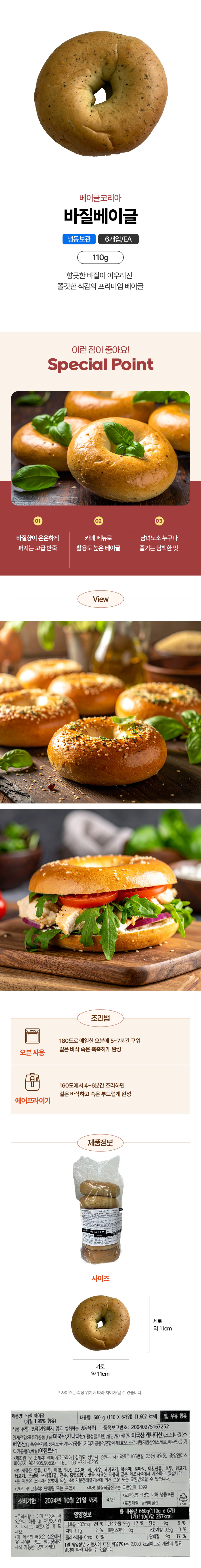 베이글코리아 바질베이글(110g*6입 660g/EA)