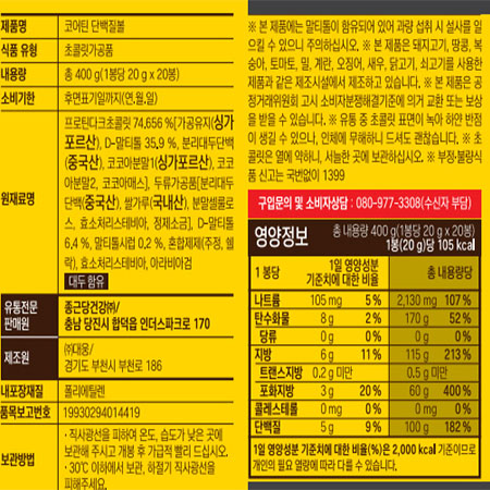 종근당건강 코어틴단백질볼(초코볼_20g*20봉 400g/EA) 이미지