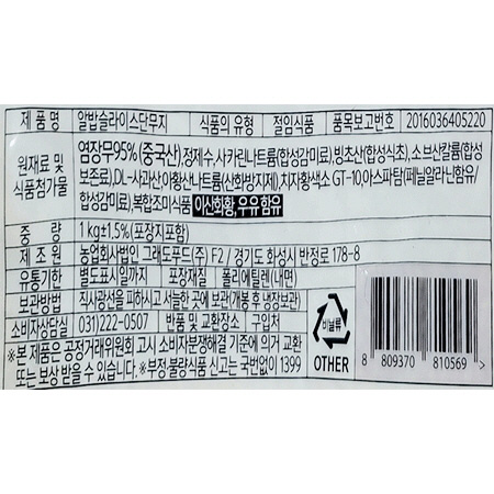 웰빙 단무지(다진것 일식용_알밥용 1Kg/EA)