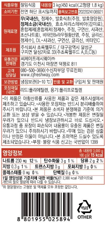 이츠웰 쌈무(프리미엄_2무첨가_새콤달콤_국산무60% 3Kg/EA) 이미지