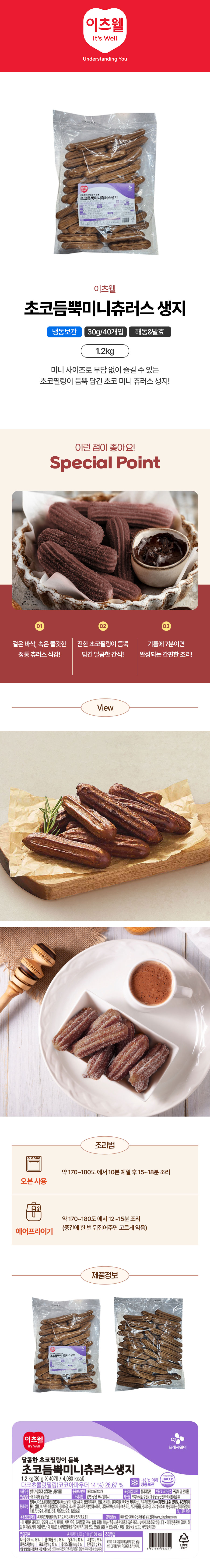 이츠웰 초코듬뿍미니츄러스생지(30g*40입 1.2Kg/EA)
