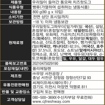 이츠웰 우리밀통모짜치즈핫도그(크리스피_80g*10입 800g/EA)