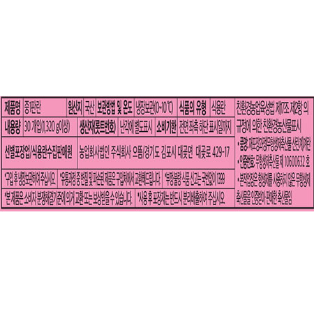 본 제품은 제품입고일별 소비기한 또는 품질유지기한이 상이하므로, 필요시 고객센터로 문의하여 주십시오. 제조일로부터 30일 까지