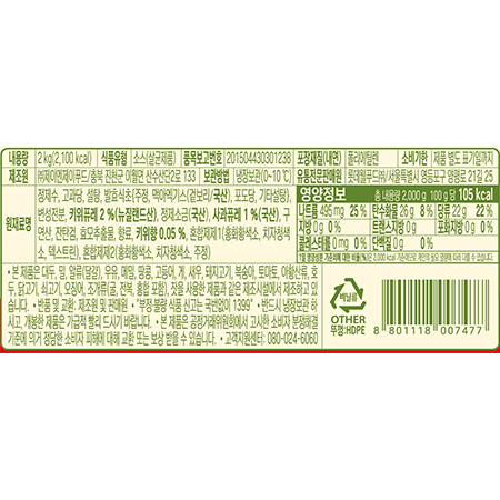 본 제품은 제품입고일별 소비기한 또는 품질유지기한이 상이하므로, 필요시 고객센터로 문의하여 주십시오. 제조일로부터 180일 까지
